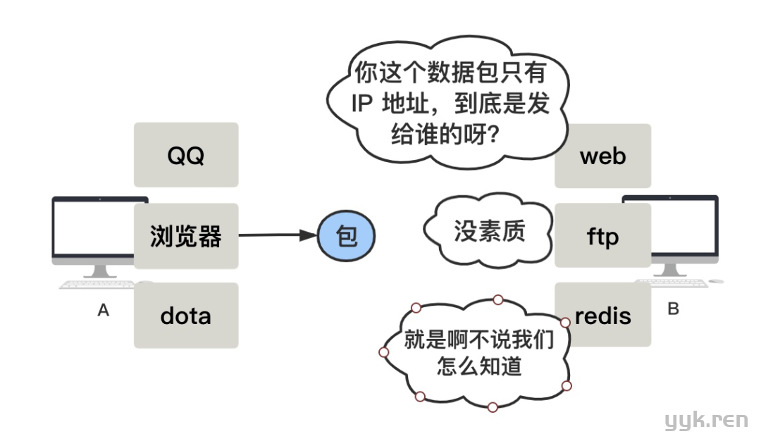 前三层协议只能把数据包从一个主机搬到另外一台主机,但是,到了目的地以后,数据包具体交给哪个程序(进程)呢?
