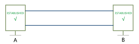 A 与 B 各自在内存中维护着自己的状态变量,三次握手之后,双方的状态都变成了连接已建立(ESTABLISHED)。